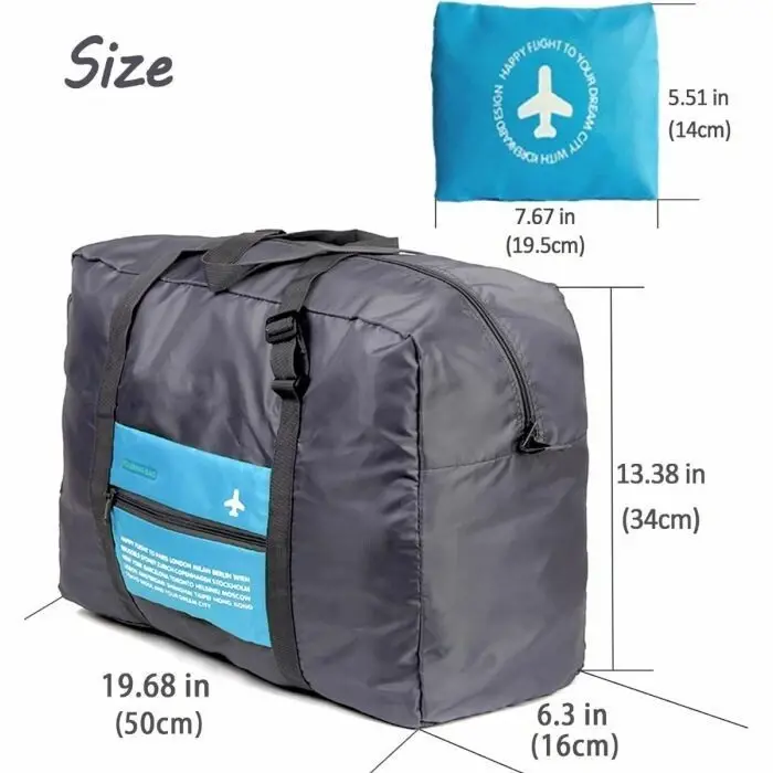 PLEGABLE: el tamaño expandido de la bolsa de viaje es de 50cm de ancho x 34cm alto x 16cm profundidad, y el tamaño plegado es de 19x14cm, lo que solo ocupa un espacio pequeño. También se puede utilizar como una bolsa de repuesto durante el viaje, que es muy fácil de llevar.