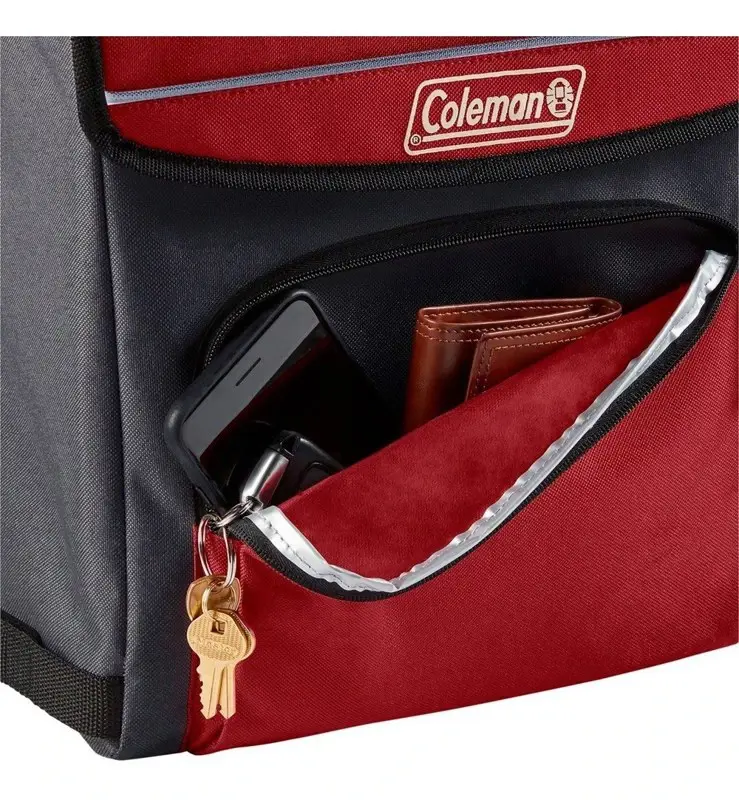 El diseño ultra portátil de Bolso térmico COLEMAN, lo hace ideal para salidas de Campamento, Playa y cualquier otra actividad al aire libre en general. Mantiene las comidas y bebidas frías hasta que estés listo para disfrutarlas. También ofrece una práctica solución de almacenamiento para aprovechar al máximo el espacio interior. El compartimento principal con cremallera se ajusta hasta 34 latas, y sella en frío con un aislamiento de primera calidad, manteniendo el hielo por hasta 30 horas en temperaturas de hasta 30° C. Un bolsillo frontal ofrece un cómodo almacenamiento en seco para bocadillos, utensilios e incluso teléfonos. El revestimiento a prueba de fugas y tratado con anti microbianos resiste la formación de olores, moho y hongos, por lo que el Bolso térmico COLEMAN se mantiene siempre limpio.