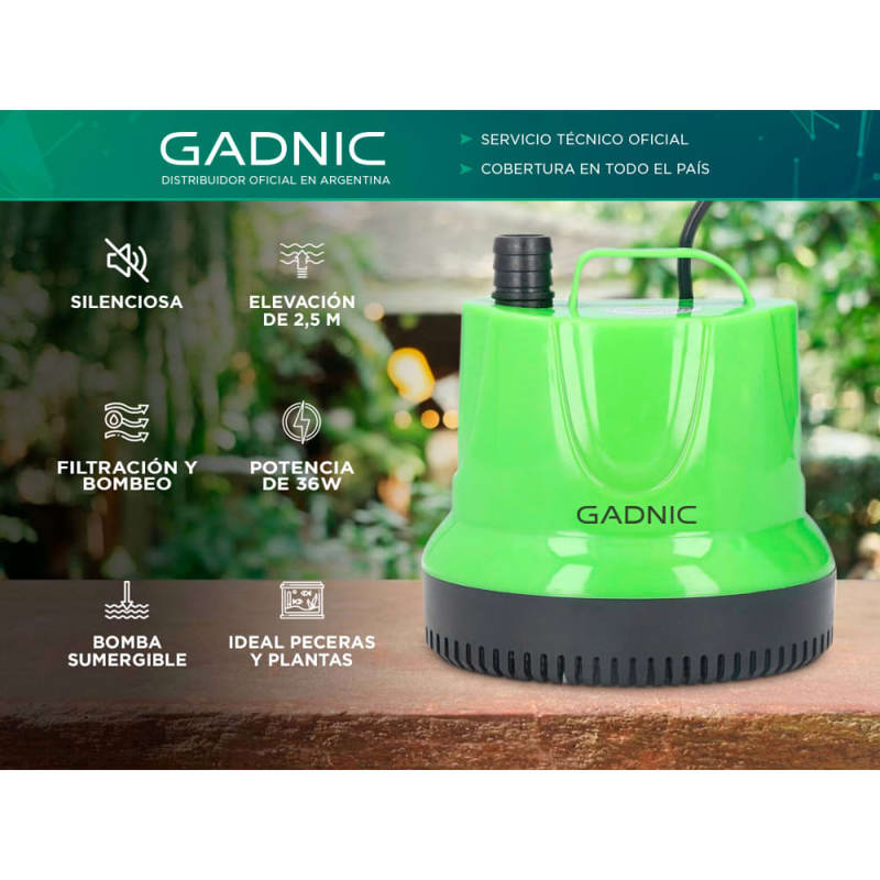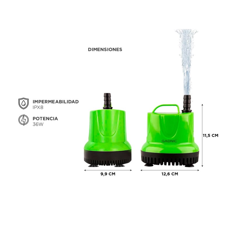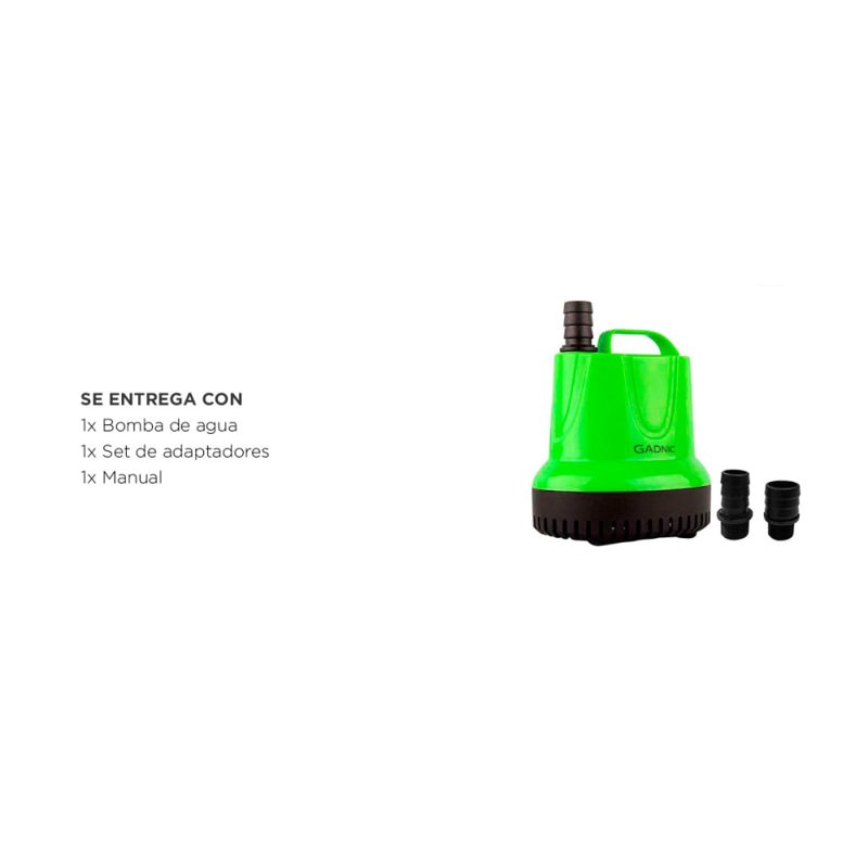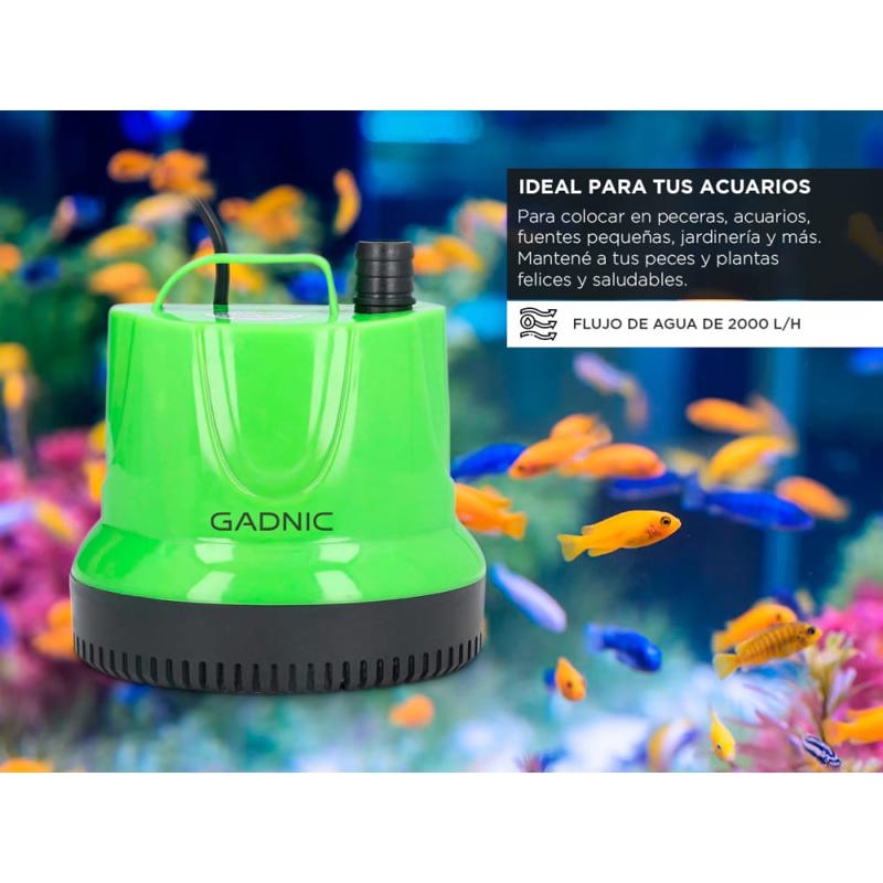 ¡Haz que tu acuario o fuente cobren vida con la Bomba de Agua Sumergible Gadnic! Esta potente bomba es el corazón de tu entorno acuático, proporcionando un flujo constante y hermoso de agua para mantener tus peces y plantas felices y saludables. Diseñada con la última tecnología y rendimiento óptimo, la Bomba de Agua Sumergible Gadnic es la elección ideal para darle vida a tus proyectos acuáticos. Con una capacidad impresionante de 2100 litros por hora, esta bomba asegura un flujo constante de agua, lo que crea un ambiente acuático dinámico y atractivo. Ya sea que desees una cascada suave y relajante o una fuente espectacular, esta bomba cumple con tus expectativas. La Bomba de Agua Sumergible cuenta con un diseño compacto y silencioso, lo que garantiza un funcionamiento discreto y sin perturbaciones en tu acuario o fuente. Adiós a las bombas ruidosas y molestas; con esta bomba, podrás disfrutar de la serenidad y el encanto de tu entorno acuático. La seguridad y durabilidad son características clave de esta bomba. Fabricada con materiales de alta calidad y resistencia, la bomba es completamente sumergible y resistente al agua, asegurando un rendimiento óptimo incluso en condiciones acuáticas adversas. La Bomba de Agua Sumergible es una herramienta imprescindible para los amantes de la acuariofilia y la decoración acuática. Además de ser ideal para acuarios y fuentes, también puede utilizarse en estanques y sistemas hidropónicos. No permitas que tu acuario o fuente sean solo un paisaje estático. Dale movimiento, vida y belleza con la Bomba de Agua Sumergible de 2,5 metros. La combinación perfecta de rendimiento, eficiencia y estética hará que tus proyectos acuáticos se destaquen y cautiven a todos. Especificaciones Potencia: 36W Voltaje: 220v Tamaño: 12,6 x 9,9 x 11,5 cm Ascensor: 2,5 m Flujo: 2000L/H Impermeabilidad: IPX8 Función: filtración y bombeo de agua circulante Aplicación: peceras, acuarios, fuentes pequeñas, artesanías, jardinería, entre otros Uso: con agua Ruido: silencioso