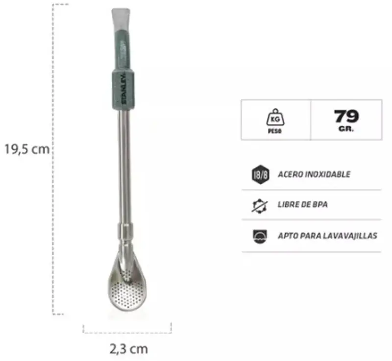 BOMBILLA 10-10302-001 SPOON VERDE STANLEY BOMBILLA STANLEY SPOON VERDE Modelo 10-10302-001- Color VERDE- Garantía fabricante de por vida- Origen China