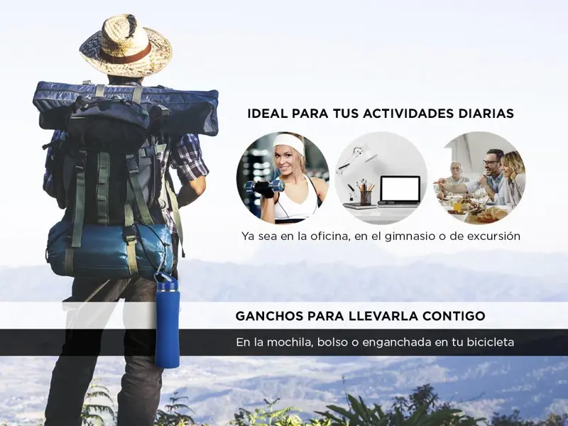 Con un agarre ergonómico, esta botella se adapta cómodamente a tu mano, lo que la hace ideal para llevar durante tus actividades diarias, ya sea en la oficina, en el gimnasio o de excursión. Su tapa a rosca garantiza un cierre seguro, mientras que el pico rebatible facilita el acceso a tu bebida con una sola mano.