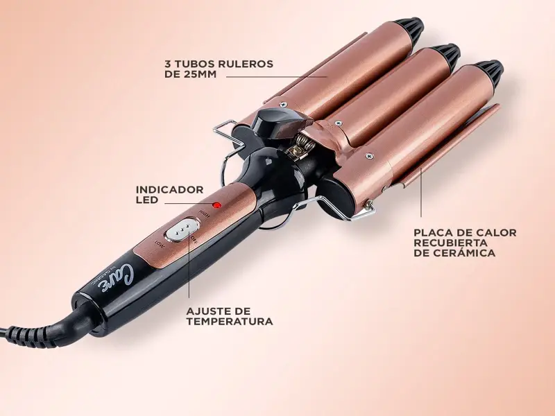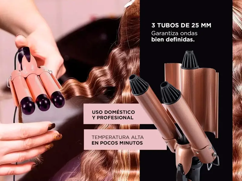 ¡Gadnic presenta su nueva linea de Buclera Rizadora de 3 Tubos! La Buclera Rizadora de 3 tubos de 25 mm es una herramienta de ondulación indispensable para todo estilista. Este producto posee una tecnología que le permite alcanzar la temperatura más alta en pocos minutos y así lograr resultados increíbles al instante