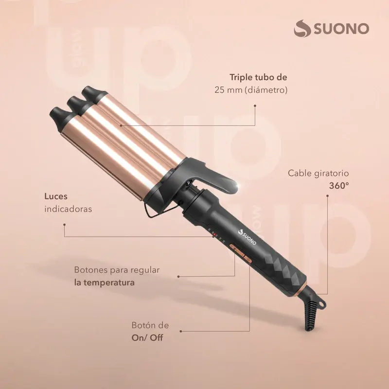 Buclera Rizador Tripe Suono 25Mm Con Ajuste Temperatura