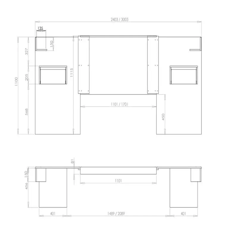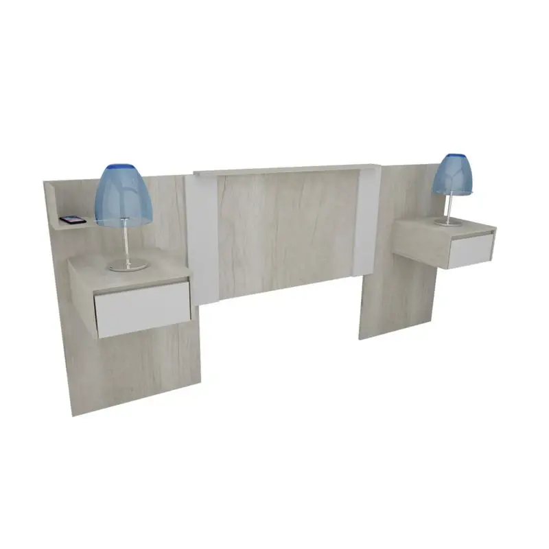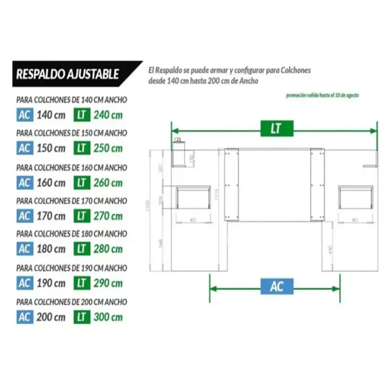 Respaldo de cama con 2 mesas de luz y cajón.El respaldo se puede armar para diversas medidas de colchón entre 140 a 200 cm de ancho.