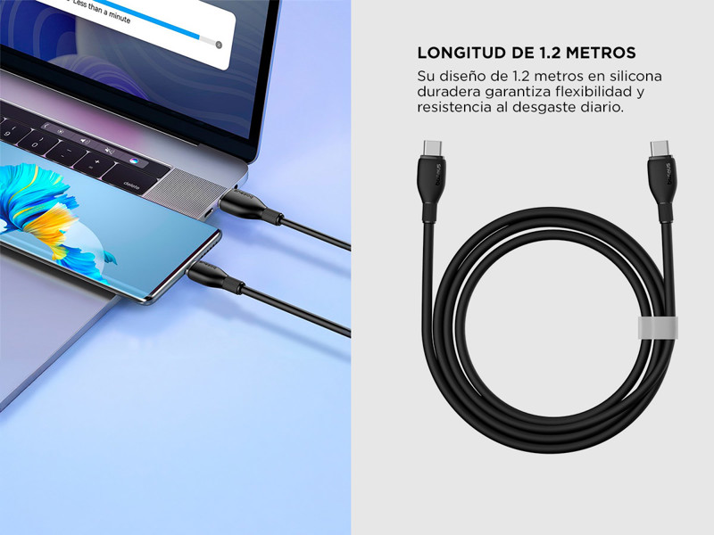 Equipado con sistemas de seguridad avanzados, el cable ofrece protección contra sobrecalentamiento, cortocircuitos y picos de tensión, brindando tranquilidad al usuario al saber que sus dispositivos están seguros mientras se cargan.