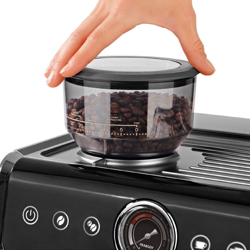 - Molinillo de café integrado: Sistema cónico de precisión por muelas, ajustable a 20 niveles de molienda