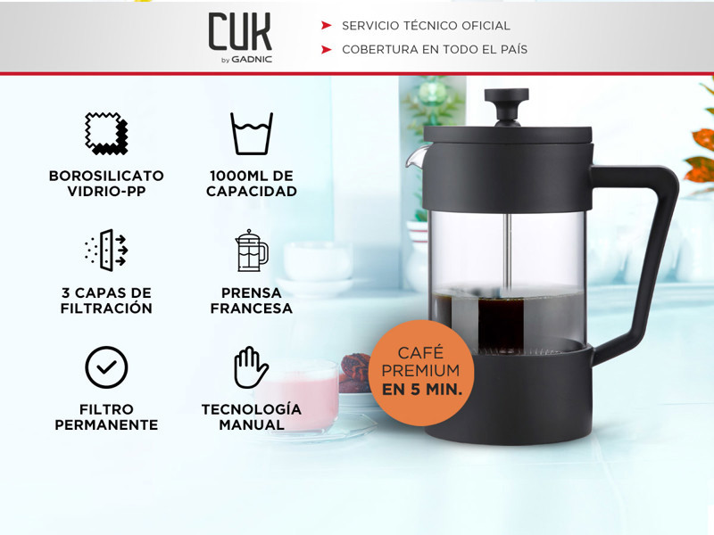 Nueva Cafetera Prensa Francesa Gadnic! Prensa francesa: la prensa francesa Gadnic prepara una taza de café premium en solo 5 minutos, simplemente agregue café molido, agua caliente y presione. No requiere filtros de papel ni cápsulas de plástico. Para los amantes del café: ahora puedes tener una gran taza de café en casa!. Este es un gran regalo para los aficionados al café.