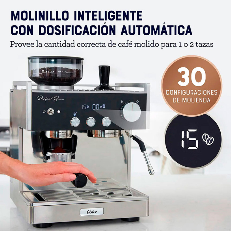 CAFETERA PARA ESPRESSO OSTER PERFECT BREW MÁXIMA 15 BARES CON MOLINILLO INTEGRADO