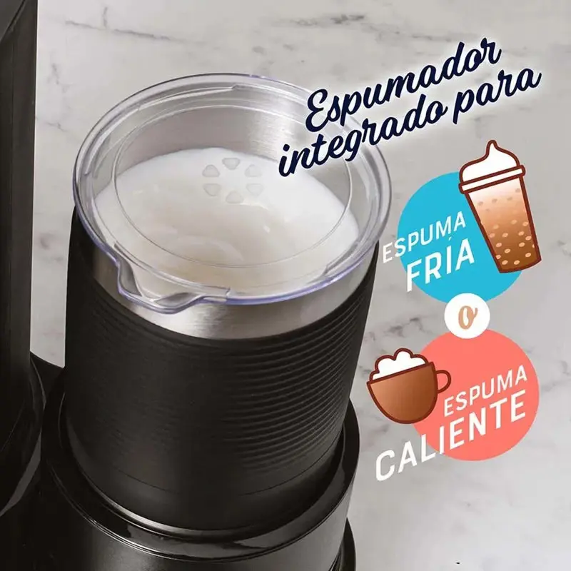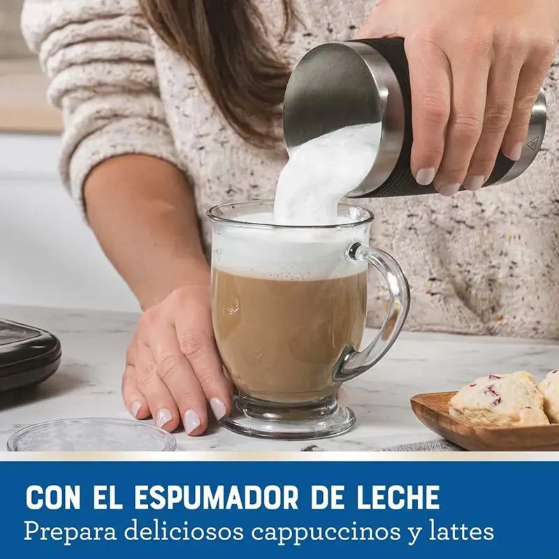 PREPARÁ DESDE TU CASA BEBIDAS DE ESPECIALIDAD FRÍAS O CALIENTES COMO LAS DE TU CAFETERÍA FAVORITA Con el espumador de acero inoxidable de la cafetera Latte Oster®, dale el toque exacto de espuma a tu latte, cappuccino u otras bebidas favoritas. Olvídate de ir hasta la tienda de café especializado favorito. Ahora puedes hacer todos los tipos de café que te gustan en tu propia casa. Esta cafetera ofrece la función de 4 en 1 para preparar lattes, cappuccinos, café caliente y frío. Revoluciona tus bebidas diarias utilizando el espumador de acero inoxidable de 350ml con el cual puedes darles el toque exacto de espuma fría o caliente a tus bebidas. La cafetera incluye una cuchara medidora de café con su propio compartimiento de almacenaje para mayor conveniencia; te da la medida exacta que te permitirá tener una mayor consistencia en el sabor de tus bebidas. Esta cafetera incluye un filtro de café y vaso de 22oz con pajilla y tapa reutilizables los cuales te permitirán ahorrar más y desperdiciar menos. • Funcionalidad 4 en1 que te permite preparar, espumar y crear café con leche, cappuccinos, bebidas de café heladas o calientes, todo con una cafetera personal • Espumador integrado crea espuma fría o caliente para obtener café con leche y cappuccinos perfectos al estilo de un barista • Preparación sin cápsulas que te permie crear un café sabroso, caliente o helado en minutos con dosis concentradas justas para lattes y cappuccinos • Sistema de medición fácil integrado que facilita preparar la cantidad perfecta de café y espuma para tus bebidas de café favoritas • Medidas sugeridas en: espumador, tanque de agua, vaso y cuchara • Vaso reutilizable de 22oz, con pajilla y tapa • Filtro reutilizable para mayor ahorro • Cuchara de café de dos lados