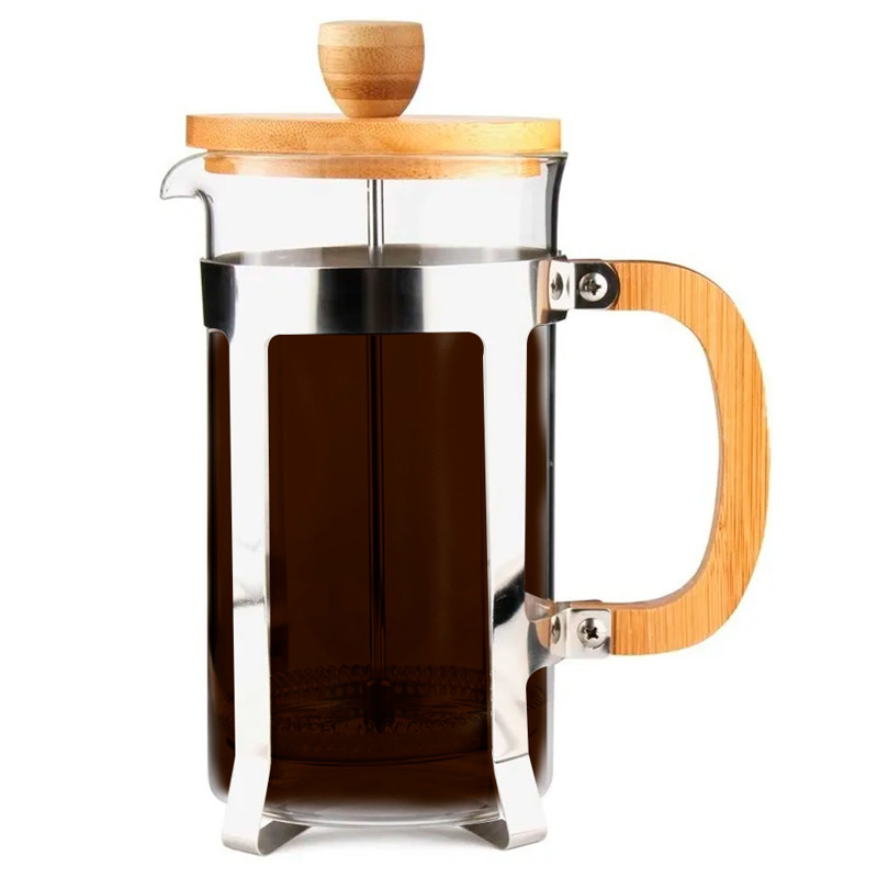 Moderno y retro elegante: el diseño de cafetera francesa incorpora tanto color de bambú natural como marco de acero inoxidable