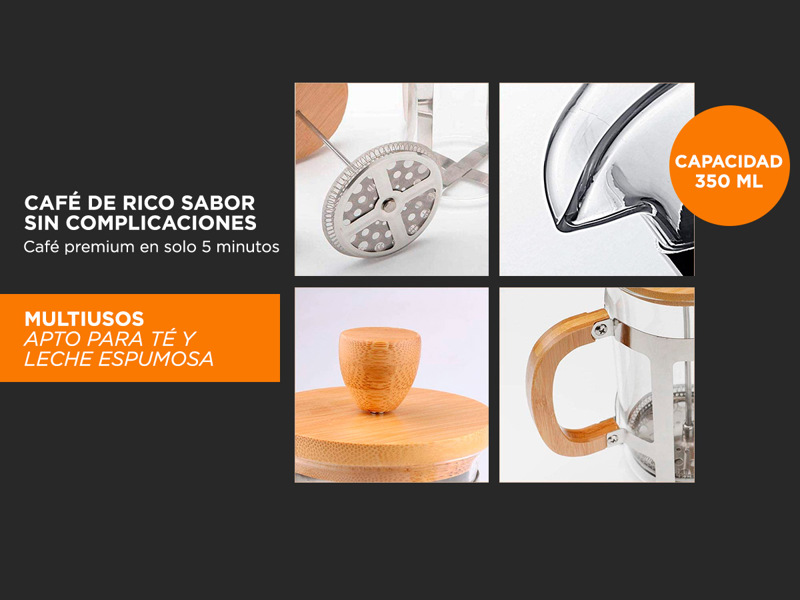 Gadnic presenta su nueva prensa francesa manual con capacidad de 350ml. construida en vidrio reforzado y detalles en bambú.