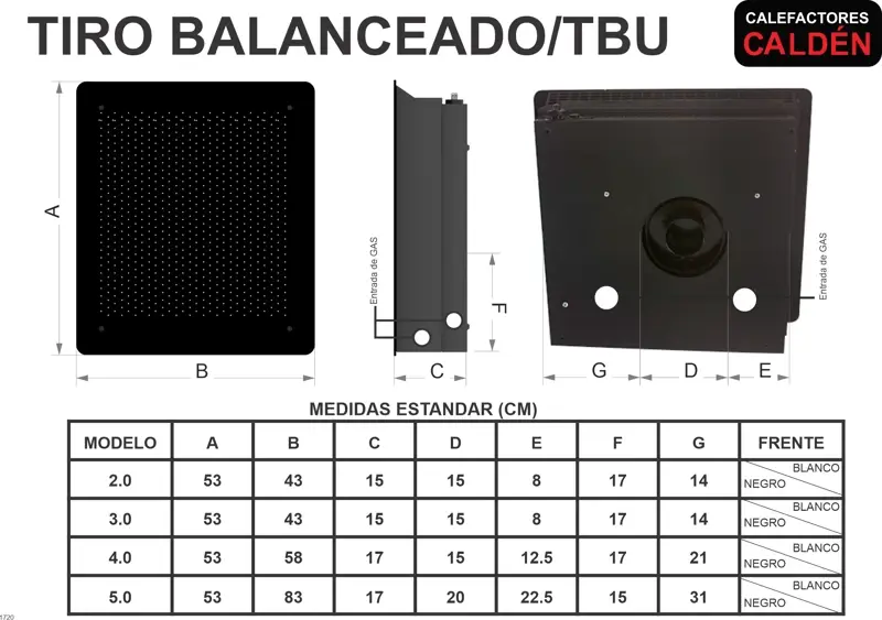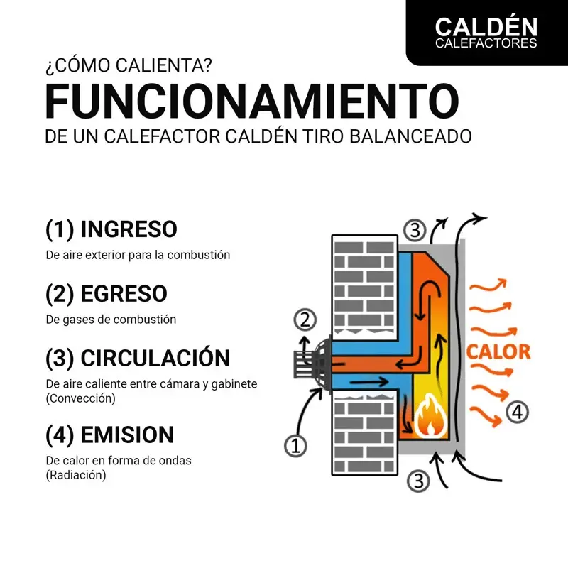 Poderoso Calefactor CALDÉN a gas Tiro Balanceado 4.0 salida horizontal, de 4000 Kcal/h con terminación en acero inoxidable.
