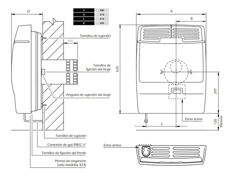 • Encendido piezoeléctrico y válvula de seguridad termoeléctrica.