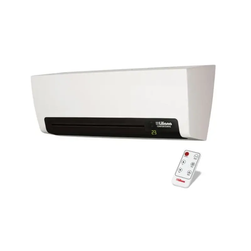 TURBOCALEFACTOR TIPO SPLIT- Liliana Modelo: CCCWD900 Características • Potente turbina tangencial de 1500 RPM y termostato ambiental que corta a la temperatura seleccionada ahorrando energía. • DISPLAY DIGITAL: Indica la temperatura y funciones seleccionadas. • Control remoto. • Fácil montaje en pared. • Función oscilación del deflector de aire. • Placa cerámica de PTC de alta seguridad. • Timer programable de ½ hasta 7 ½ hs. • Corte por sobrecalentamiento. • Potencia: 1000/2000 watts. *- Alto: 24,9 cm. *- Ancho: 64 cm. *- Profundidad: 17,3 cm. • Turbocalefacción: La Línea de Turbocalefactores Liliana genera una intensa brisa de calor envolvente asegurando una rápida y agradable climatización del ambiente. Su turbina tangencial acelera la distribución del calor, logrando un ambiente cálido en pocos minutos y disminuyendo el consumo de energía. **************************************************************************************************************************************************************** 72hs de prueba con nosotros GARANTIA DE 24 MESES CON LA MARCA