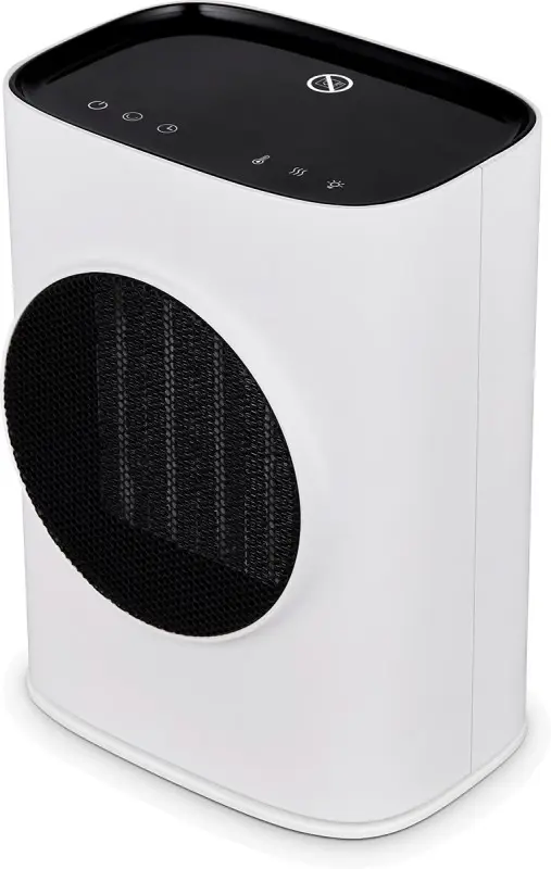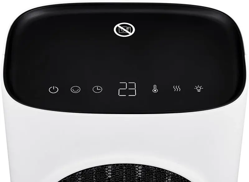 - 1500W Placas Calefactoras PTC / alto Rendimiento Funcion Oscilante Display Digital Touch con luz Led / Temporizador hasta 9 hs / Ajuste de temperatura Protección por sobrecalentamiento Corte de seguridad por vuelco Dimensiones del producto Alto 23,8 cm Ancho 17,5 cm Prof. 12,8 cm Peso Neto 1.6 Kg