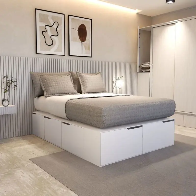 ¡Dale un descanso al desorden y un hogar a tu ropa! ??Transformá tu dormitorio en un oasis de orden y tranquilidad con la Cama Box de EMC. Disponible en tres medidas ideales para cada necesidad (1.40, 1.60 y 2.00 metros de ancho), esta cama inteligente no solo ofrece un descanso superior, sino que también resuelve tus problemas de guardado.Características y Beneficios Clave:Máxima Capacidad de Almacenamiento: Su diseño incorpora 6 cajones de amplio espacio y 2 zapateros integrados, lo que te permite liberar espacio en el placard y mantener todo organizado y al alcance de la mano. Cada cajón soporta hasta 20 kg.Materiales Premium: Construida en MDP en diversas tonalidades de alta calidad, que aportan durabilidad y un acabado estético de excelencia.Funcionalidad y Resistencia: Cuenta con correderas telescópicas que garantizan un funcionamiento suave y prolongado, y regatones antihumedad para una mayor protección y vida útil del mueble.Paleta de Colores: Elegí la terminación perfecta para tu dormitorio entre Blanco, Helsinki, Báltico, Wengue y Venezia.Ficha Técnica Medidas del productoProfundidad: 202 cmAncho: 140 / 160 / 200 respectivamente cmAltura: 40 cmPesos del productoPeso máximo que soporta: 300 kgPeso del producto: 105 kgLas imágenes son ilustrativas