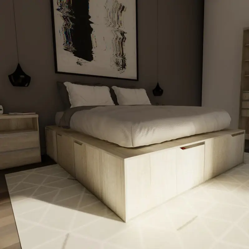 ¡Dale un descanso al desorden y un hogar a tu ropa! ??Transformá tu dormitorio en un oasis de orden y tranquilidad con la Cama Box de EMC. Disponible en tres medidas ideales para cada necesidad (1.40, 1.60 y 2.00 metros de ancho), esta cama inteligente no solo ofrece un descanso superior, sino que también resuelve tus problemas de guardado.Características y Beneficios Clave:Máxima Capacidad de Almacenamiento: Su diseño incorpora 6 cajones de amplio espacio y 2 zapateros integrados, lo que te permite liberar espacio en el placard y mantener todo organizado y al alcance de la mano. Cada cajón soporta hasta 20 kg.Materiales Premium: Construida en MDP en diversas tonalidades de alta calidad, que aportan durabilidad y un acabado estético de excelencia.Funcionalidad y Resistencia: Cuenta con correderas telescópicas que garantizan un funcionamiento suave y prolongado, y regatones antihumedad para una mayor protección y vida útil del mueble.Paleta de Colores: Elegí la terminación perfecta para tu dormitorio entre Blanco, Helsinki, Báltico, Wengue y Venezia.Ficha Técnica Medidas del productoProfundidad: 202 cmAncho: 140 / 160 / 200 respectivamente cmAltura: 40 cmPesos del productoPeso máximo que soporta: 300 kgPeso del producto: 105 kgLas imágenes son ilustrativas