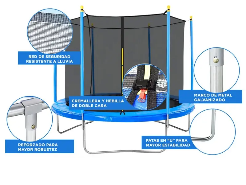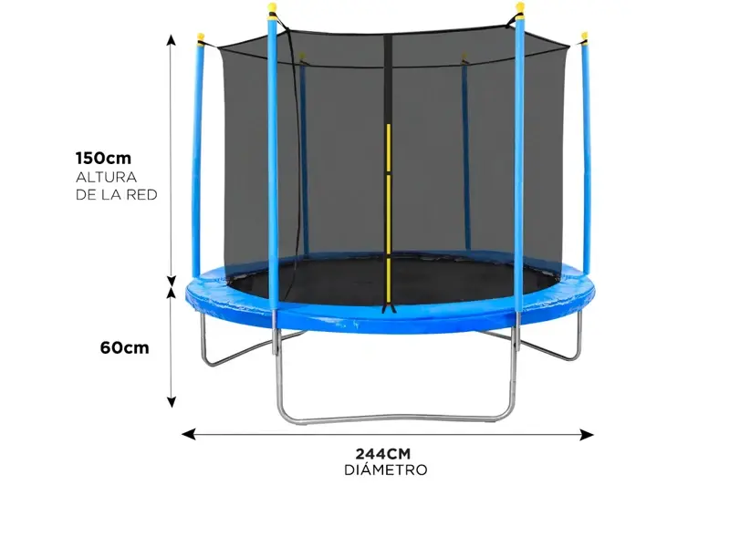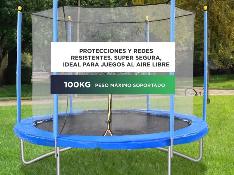 ¡Gadnic presenta su nueva línea de camas elásticas para exterior! Disfruta de las camas elásticas Gadnic de alta calidad. ¡Podrás divertirte sin límites! Montaje sencillo: Su resistencia y fácil armado la hacen unas de las más elegidas del mercado. Incluye su kit de armado Apta para exterior:Una cama elástica Gadnic es una gran inversión a largo plazo para la diversión de toda la familia. Está construida de materiales elásticos resistentes y aptos para el exterior Diversión y seguridadEsas son las prioridades de este producto, por eso, incluye red de seguridad de 150cm para evitar accidentes y soporta hasta 100kg