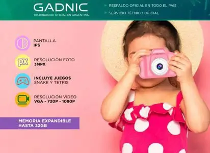 ¡GADNIC presenta su nueva línea de cámaras Kids! Capturá momentos con tu cámara GADNIC y generá imágenes realmente espectaculares que podrás guardar para siempre. ¡Ideal para Capturar tus recuerdos! Mejor calidad de imagen con la facilidad de uso de una cámara compacta. Atesorá tus mejores experiencias tal como las viviste y sin preocupaciones. Gracias a su tamaño reducido podés transportarla cómodamente a donde quiera que vayas. La calidad de imagen y video mejorada la hacen la mas elegida del mercado.