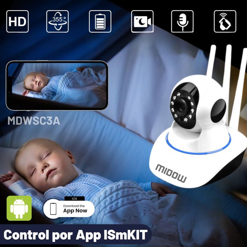 Cámara de Seguridad Domo Inalámbrica Midow WiFi con Base HDMonitoreo inteligente en alta definición, fácil de instalar y controlar.La cámara domo Midow HD WiFi con base es una excelente opción para quienes buscan vigilancia eficiente, compacta y sin cables. Ofrece conexión remota por WiFi, visión panorámica, audio bidireccional y grabación local o en la nube, todo en un diseño moderno ideal para interiores.Características destacadas:Conectividad WiFi (2.4 GHz)Se enlaza fácilmente con tu red doméstica. Controlá la cámara desde tu celular con la app Midow (Android / iOS).Resolución HD (720p o 1080p)Imágenes claras y fluidas para monitoreo en tiempo real con buena calidad visual.Rotación motorizadaMovimiento horizontal de hasta 355° y vertical de 90°, cubriendo un área amplia sin puntos ciegos.Visión nocturna infrarrojaPermite ver claramente en entornos sin luz, con alcance de hasta 10 metros.Detección de movimientoEnvía alertas al celular cuando detecta actividad, ideal para monitorear ausencias o proteger espacios sensibles.Audio bidireccionalCon micrófono y parlante integrados. Escuchá y hablá en tiempo real desde la app.Grabación local y en la nubeCompatible con tarjeta microSD (hasta 128?GB) y almacenamiento en la nube opcional (según configuración de app).Base de montaje incluidaFácil instalación en techo, pared o simplemente apoyada sobre una superficie plana.Incluye:1 Cámara Midow Domo WiFi HD1 Base para instalación1 Fuente de alimentaciónManual de usuarioKit de tornillos (si aplica)Ideal para:Interiores de casas, oficinas, negocios, habitaciones de bebés, monitoreo de mascotas o entradas principales.