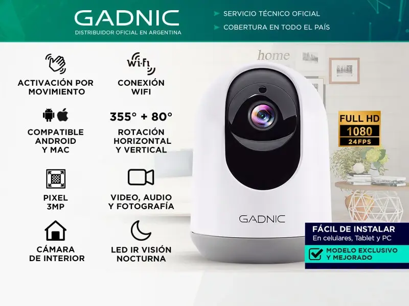 ¡Disfrutá la tranquilidad de saber que estás seguro las 24hs del día con la nueva cámara de seguridad Gadnic! Esta cámara wifi cuenta con una instalación muy fácil: solo necesitás descargar la app, conectarte al wifi y ¡listo! Posee visión nocturna de alto poder que te permiten ver hasta 15 metros en perfectas condiciones aún de noche. La resolución FULL HD de 3MP y 1080x1920P y su capacidad de movimiento 360° te facilitan ver por completo todo lo que pase alrededor de ella. En caso que pase algo, la cámara detecta el movimiento y te envía una alerta con foto al celular y emite una sirena en el lugar donde este.