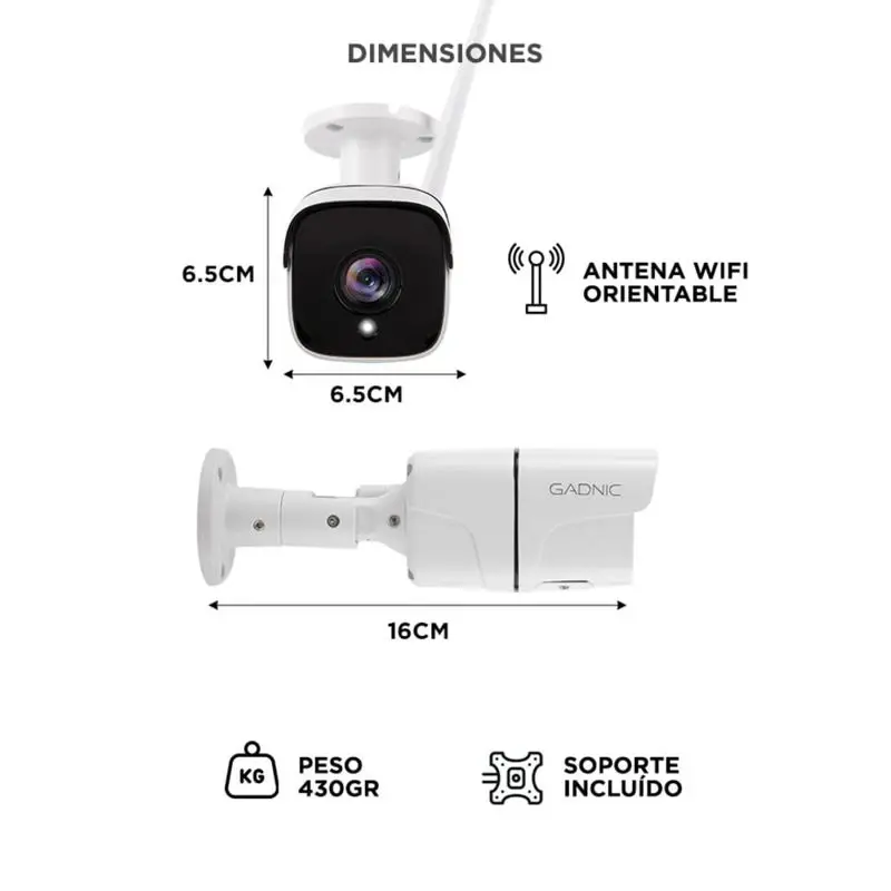 La SX37 es la nueva versión de cámaras Full HD tipo Bullet de GADNIC. Esta cámara es IPl65, que da la posibilidad de usarse en interiores o exteriores. Su resolución Full HD 1080P permite ver con mayor definición cualquier movimiento que pase frente a ella. Gracias a su capacidad de almacenamiento expandible hasta 128GB, y su función de activación por movimiento puede optimizar el tiempo de grabado en su memoria. El manejo desde la App Gadnic hace que la cámara sea muy fácil de usar, configurar las notificaciones y alertas en tu celular. La Cámara de Seguridad IP WiFi P2P Full HD con Visión Nocturna es una herramienta esencial para mantener tu hogar o negocio seguro en todo momento. Equipada con características avanzadas y fácil de instalar, esta cámara te brinda tranquilidad y un control completo sobre lo que sucede en tu propiedad. Conexión Inalámbrica: Gracias a su conectividad WiFi, la instalación es rápida y sin complicaciones. Puedes acceder a las imágenes y videos en tiempo real desde tu smartphone o computadora, incluso cuando estás fuera de casa. Resolución Full HD: La cámara captura imágenes en alta definición, lo que significa que verás cada detalle con claridad. Las imágenes son nítidas y los colores son vibrantes. Visión Nocturna Avanzada: Con la visión nocturna por infrarrojos, la cámara sigue vigilando incluso en la oscuridad total. Esto es esencial para la seguridad durante la noche. Detección de Movimiento: La cámara está equipada con sensores de movimiento que activan la grabación cuando detectan actividad. Recibirás notificaciones en tu dispositivo móvil cuando se detecte movimiento. Almacenamiento en la Nube o Tarjeta SD: Puedes elegir almacenar tus grabaciones en la nube o en una tarjeta de memoria para mayor flexibilidad. Diseño Resistente a la Intemperie: Esta cámara es adecuada para uso en exteriores e interiores, lo que la hace versátil para diferentes aplicaciones de seguridad. La Cámara de Seguridad IP WiFi P2P Full HD con Visión Nocturna es una inversión inteligente para proteger tus seres queridos y tus posesiones. Ya sea para supervisar tu hogar mientras estás fuera o para mantener tu negocio seguro, esta cámara ofrece un rendimiento confiable y una vigilancia constante en cualquier momento del día o de la noche.