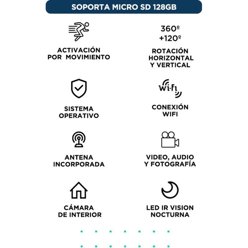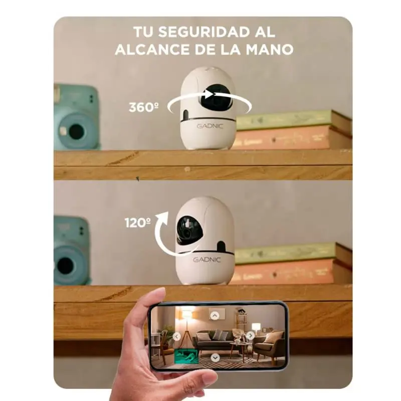 ¡Disfrutá la tranquilidad de saber que estás seguro las 24hs del día con la nueva cámara de seguridad Gadnic SX9! Esta cámara wifi cuenta con una instalación muy fácil: solo necesitás descargar la app, conectarte al wifi y ¡listo! Posee 6 led IR de alto poder que te permiten ver hasta 15 metros en perfectas condiciones aún de noche. La resolución FULL HD de 1080x1920P y su capacidad de movimiento 360° te facilitan ver por completo todo lo que pase alrededor de ella. En caso que pase algo, la cámara detecta el movimiento y te envía una alerta con foto al celular y emite una sirena en el lugar donde este.
