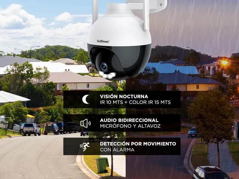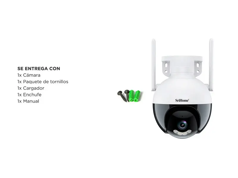 Acerca de Cámara de Seguridad IP SriHome 2MP Wifi-LAN 12V ¡Introduciendo la Cámara de Seguridad que redefinirá tu protección! Con una resolución FHD de 2MP (1080P), no se escapará ningún detalle de tu vista. Su tecnología de compresión H.264 garantiza la máxima calidad de imagen mientras mantiene un almacenamiento eficiente. El micrófono y el altavoz integrados ofrecen una comunicación bidireccional sin esfuerzo. Ya sea para advertir a intrusos o charlar con un ser querido, estarás conectado en todo momento. El sensor de amplio rango dinámico asegura imágenes claras en diversas condiciones de iluminación, mientras que la lente de 4 mm proporciona una visión nítida. Además, su capacidad de zoom digital 3x te acerca aún más a la acción. La visión nocturna ya no es un problema. Con fuentes de luz duales y visión a todo color, nunca perderás de vista lo que es importante, incluso en la oscuridad. Controla todo desde tu dispositivo Android o iOS a través de la aplicación. Con una velocidad de cuadro de imagen adaptable y una exposición automática que ajusta la imagen en tiempo real, esta cámara está diseñada para brindarte seguridad sin compromisos. Especificaciones FHD: 2MP, 1080P (1920*1080P), H.264 Audio: Micrófono y altavoz integrados, compatible con audio bidireccional Sensor: Digital amplio dinámico Lente: lente de 4 mm, compatible con zoom digital de 3x Visión nocturna: Admite fuentes de luz duales, visión nocturna a todo color AP Hotspot: Admite AP Hotspot, la cámara se puede conectar al teléfono sin red Tarjeta TF: Admite tarjeta TF 4G-128GB para grabación, reproducción Descarga de video: descarga de la aplicación de soporte Administración de acceso de seguridad: el sistema establece por defecto al primer usuario como administrador, y el administrador debe autorizar a otros usuarios antes de acceder a la cámara Aplicación: SRI HOME compatible con Android e iOS Resolución: 1080P (1920x1080), VGA (480x360) Velocidad de cuadro de imagen: 15 fps