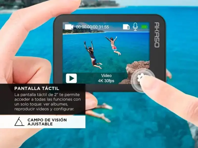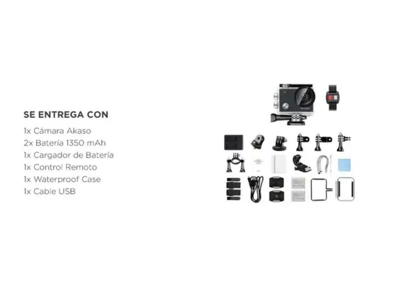 Tu mejor opción para registrar experiencias inolvidables. No importa tu destino, llevala en todos tus viajes. En la playa o en la montaña, en familia o con tu gente cercana, grabá cada momento. Con tu cámara de video Akaso V50X, también podrás crear contenido para publicar en tus redes con la mejor calidad y definición. Si sos una persona apasionada por los videos, esta cámara Akaso V50X te va a resultar indispensable. Todos tus momentos pueden ser grabados de forma permanente, ya seas profesional o simplemente entusiasta, este producto es intuitivo y fácil de utilizar. Con su resolución 4K obtenés videos de óptima calidad. Con el gran angular podés abarcar grandes extensiones en lejanía. Este tipo de lente es ideal para filmar paisajes porque trabaja con una profundidad de campo más grande que otros, lo que permite acceder a zonas distanciadas de un horizonte. ¡Que no te tiemble el pulso! Ya no vas a tener que preocuparte por los movimientos involuntarios de tus manos que arruinan tus videos. La Akaso V50 V50X cuenta con estabilizador de imagen que permite reducir las vibraciones durante la toma. Especificaciones Características Generales Marca: Akaso Línea: V50 Modelo: V50X Color: Black Otros Accesorios incluidos: 1 carcasa impermeable 8 soportes Soportes para casco 1 tapa trasera antipolvo 1 cable USB 1 batería 1 cargador 1 control remoto Correas Amarras 1 paño de limpieza 1 correa para control remoto 1 manual 1 soporte para manubrio Resoluciones de Fotos Resoluciones de fotos: 20 Mpx Conectividad Conexiones: Micro-USB, Micro-HDMI Funciones Con estabilizador de imagen: Sí Con cámara lenta: Sí Peso y Dimensiones Peso: 1 lb Video Formato de señal de video: NTSC/PAL Tipo de resolución: 4K Resoluciones de video: 1920x1080, 720x720 Especificaciones Tipo de videocámara: Acción Es a prueba de agua: No Es resistente al agua: Sí Tipo de lente: Gran angular Conectividad Wi-Fi: Sí Tipos de Almacenamiento Tipos de almacenamiento: Micro-SD, Micro-SDHC, Micro-SDXC Otros Con pantalla táctil: Sí Tamaño de la pantalla: 2 ” Capacidad de la batería: 1350 mAh Duración máxima de la batería: 180 min Garantía: 12 meses Se entrega con: 1x Cámara Akaso 2x Batería 1350 mAh 1x Cargador de Batería 1x Control Remoto 1x Waterproof Case 1x Cable USB