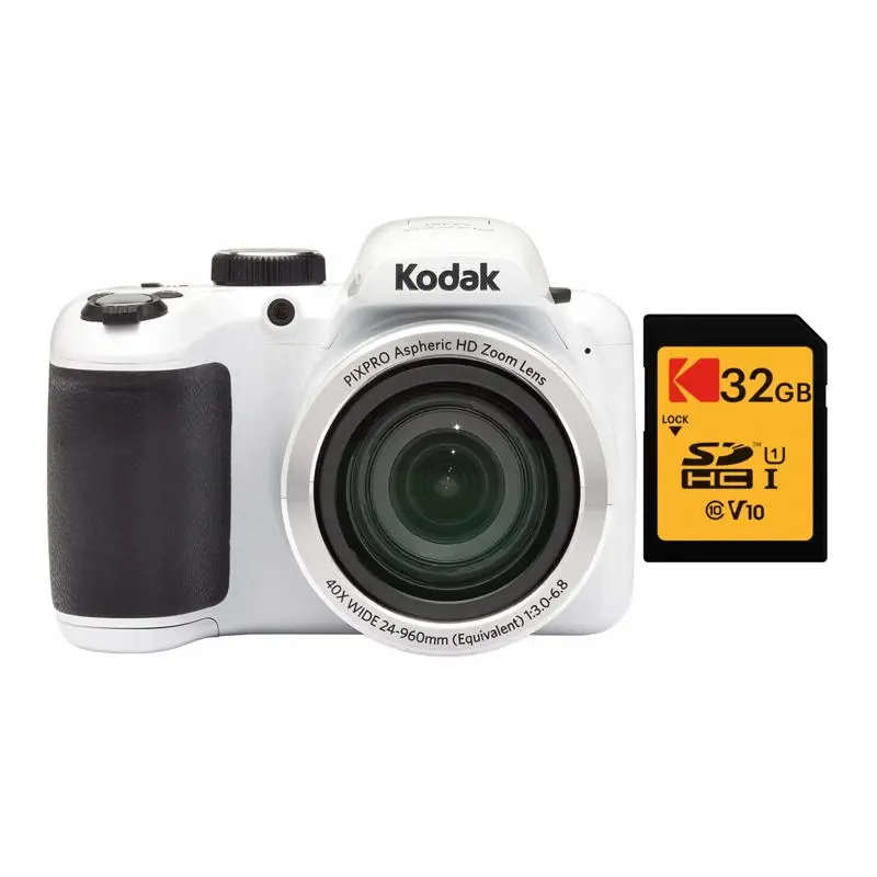 - El paquete incluye: cámara digital Kodak PIXPRO AZ401 Astro Zoom (blanco) y tarjeta de memoria Kodak 32GB Class 10 UHS-I U1 SDHC