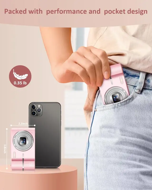- Cámara compacta portátil: La cámara digital está equipada con un sensor CMOS de alto rendimiento. Puede tomar fotos de hasta 50 MP y grabar videos en FHD 1080P. Como cámara compacta, ofrece cartelería portátil y de bolsillo, y es fácil de transportar y sacar en cualquier momento.