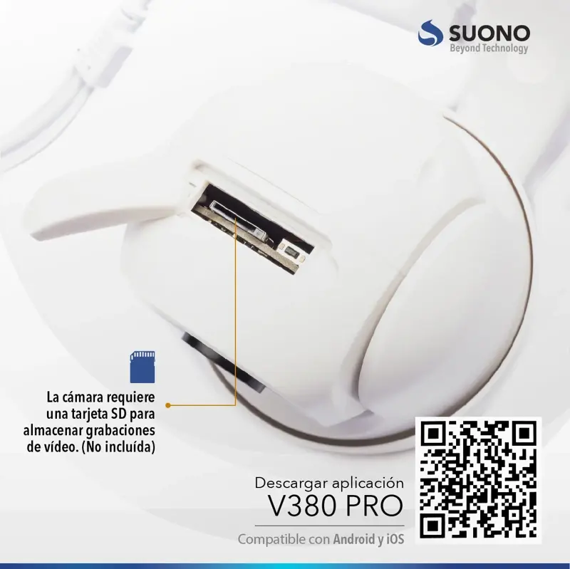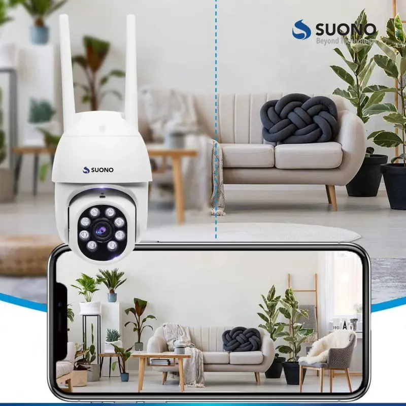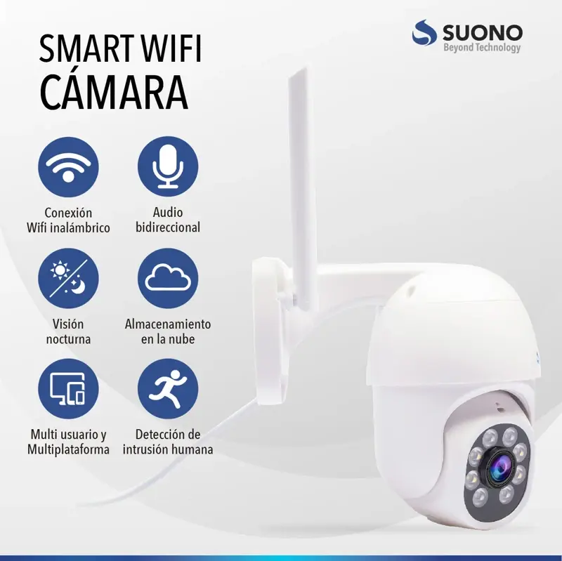 La cámara de seguridad IP WiFi inalámbrica motorizada HD de Suono es la solución ideal para proteger tu hogar o negocio. Con un diseño elegante y compacto, esta cámara de vigilancia tipo domo se adapta perfectamente a cualquier espacio interior. Su lente de 10 mm y un campo visual de 180 grados te permiten monitorear amplias áreas con una calidad de resolución HD 720p, asegurando que no te pierdas ningún detalle.