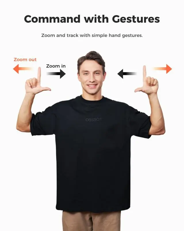 - Control dinámico de gestos: junto con el control de gestos dinámico 2.0, nuestra cámara de transmisión dice adiós al engorroso funcionamiento manual. Simplemente enfrenta la cámara web, haz un gesto de "" para bloquear el objetivo de seguimiento de retratos y haz un gesto de "" para controlar el zoom fácilmente.