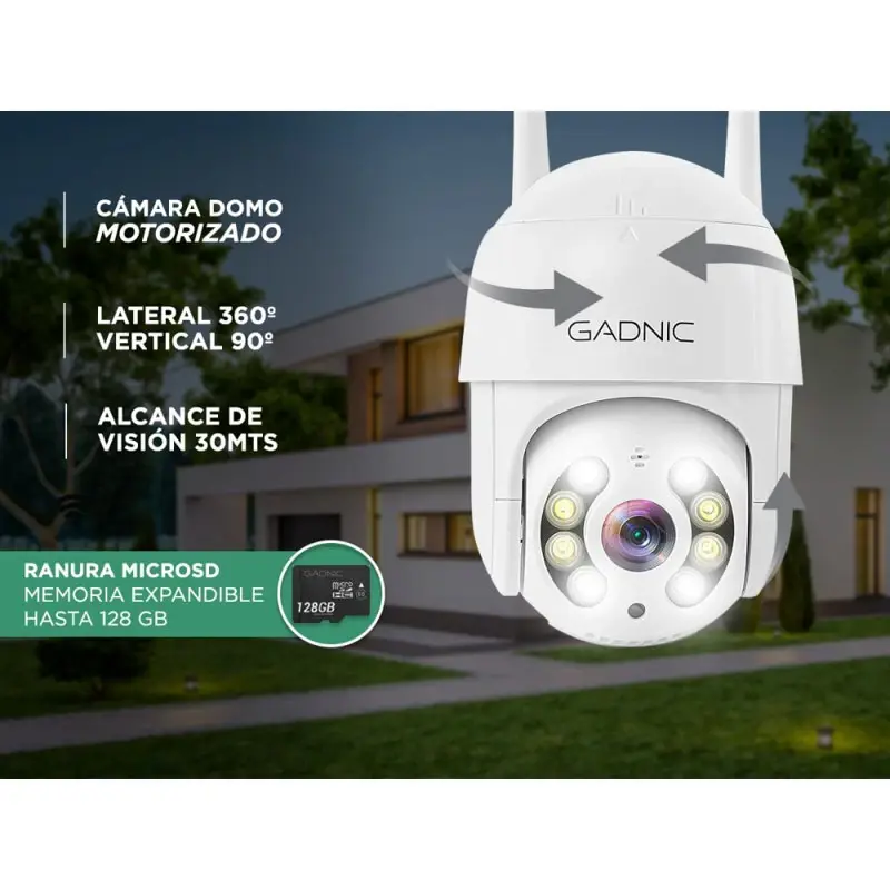 Cámara de Seguridad Wifi IP Gadnic DM200W Full HD Motorizada- P2P00039 Resolución: 1920*1080 (Full HD) App: iOS & Android Capacidad máxima: 128GB Protocolos: HTTP; UDP; SMTP; FTP; DHCP; DNS; NTP; UPnP Wifi: 2.4GHz, 150Mbps Capacidad de usuarios simultaneos: 5 Sensor: 1/2,7” CMOS Lente: 3,6 mm Velocidad máxima: 25 FPS Parlante: Sí Micrófono: Sí Visión nocturna: Sí Detección de movimiento: Sí (Con alarma) Material: ABS de alta calidad IP66