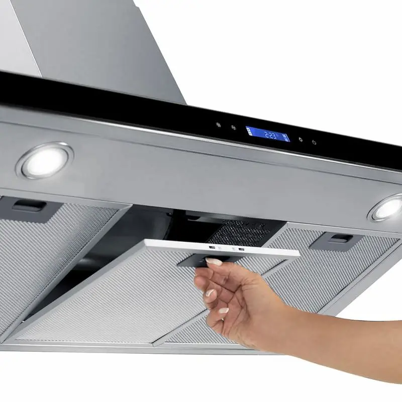 Se emitirá únicamente Factura B a consumidor final por las compras efectuadas en este canal de ventas Campana de extracción de 90 cm de ancho con opción de ser utilizado como purificador de aire sin salida al exterior. Color Acero inoxidable con su frente de vidrio templado en color negro. Panel de control soft touch con display digital y timer programable en el frente. Capacidad de extracción de 750m3/h con potencia de 162 W. Sistema de extracción de 3 velocidades. Iluminación LED y encendido electrónico. Posee 3 filtros tipo cassette de aluminio y 1 filtro de carbón activado. Origen China.Medidas sin empaque (cm): Alto 45 – Alto-extensión 75 x Ancho 90 x Profundidad 45Medidas con empaque (cm): Alto 52,5 x Ancho 96,5 x Profundidad 41Peso sin empaque (kg): 12,5Peso con empaque (kg): 16,5