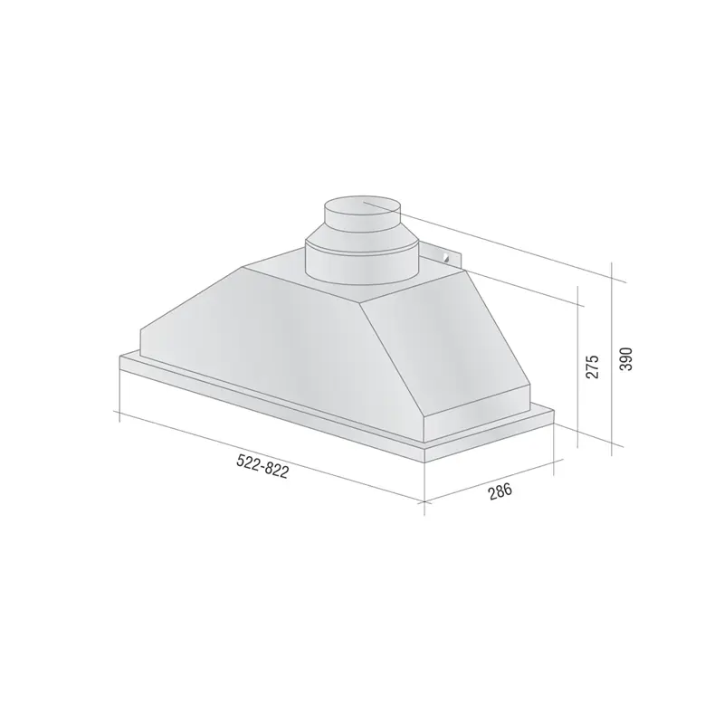 Linea pulsante3 velocidades de extracción.Motor 150 w.Caudal 500 m3/h.Iluminación led.1 Filtro triple malla de aluminio lavable.Medidas: 200mm x 760mmAcero inoxidable.Admite versión purificadora (sin salida al exterior)Agregando filtro de carbón activo (25305) x2 unidades.