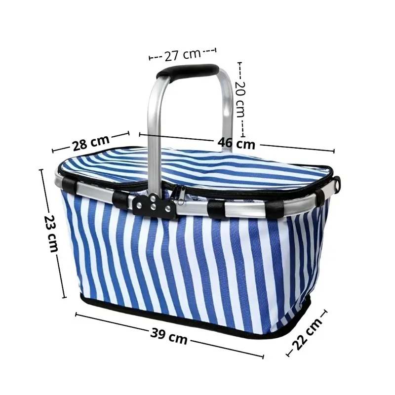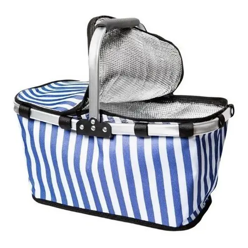 Canasta Termica Rayada Grande Plegable Picnic Aluminio Lunchera - NOUVELLE CUISINE