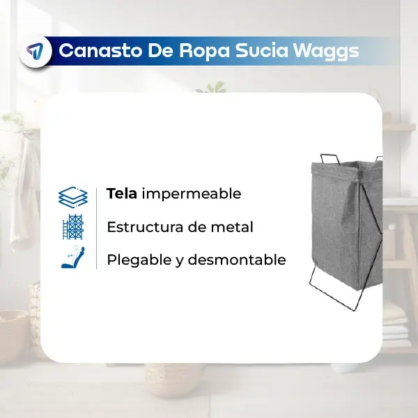 Canasto Cesto Plegable Waggs Ropa Laundry Organizador Negro