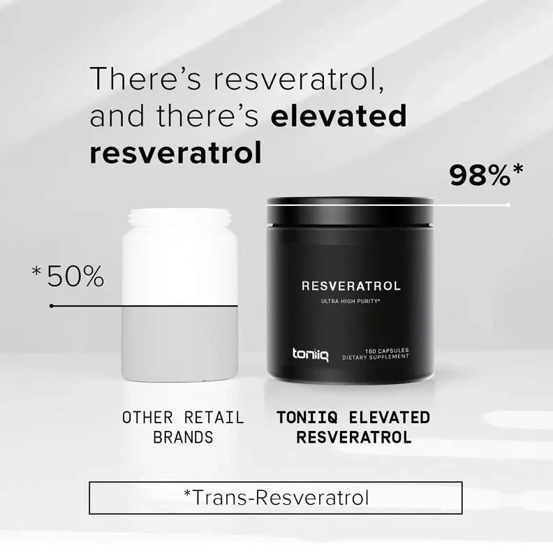 suplementos de resveratrol reservatrol resveratrol 1000 mg La forma altamente purificada del resveratrol: las cápsulas de resveratrol de Toniiq contienen 600 mg de resveratrol de la más alta calidad en cada porción, de origen ético y cultivado mediante un proceso de extracción para garantizar una pureza estandarizada del 98%. Otros suplementos de resveratrol contienen un 50% o menos. Un ingrediente activo clave: el resveratrol, que normalmente se obtiene de la piel de la uva roja y el nudo japonés, tiene increíbles beneficios para la salud. Sin embargo, la pureza siempre ha sido un desafío importante para este supernutriente; algo que la mayoría de los demás suplementos de resveratrol no proporcionan, ya que requiere un paso (y un gasto) adicional en el proceso de fabricación. Con un 98% de resveratrol trans estandarizado, nuestras cápsulas de suplementos de resveratrol proporcionan algunos de los nutrientes polifenólicos más puros y potentes disponibles. Estableciendo un nuevo estándar de pureza: para garantizar que está obteniendo un producto de la más alta calidad, cada lote se somete a pruebas de calidad y pureza durante y después de la fabricación. La calidad es lo primero y lo más importante: los productos Toniiq se producen en una planta de fabricación de última generación certificada por GMP y aprobada por la NSF aquí mismo en los EE. UU. Cada lote se prueba individualmente: probamos cada lote nosotros mismos y a través de un laboratorio independiente externo para asegurarnos de que nuestros ingredientes contienen el nivel estandarizado correcto de pureza e ingredientes activos. También analizamos cada lote para detectar posibles aditivos, contaminantes e impurezas para garantizar el más alto nivel de calidad.