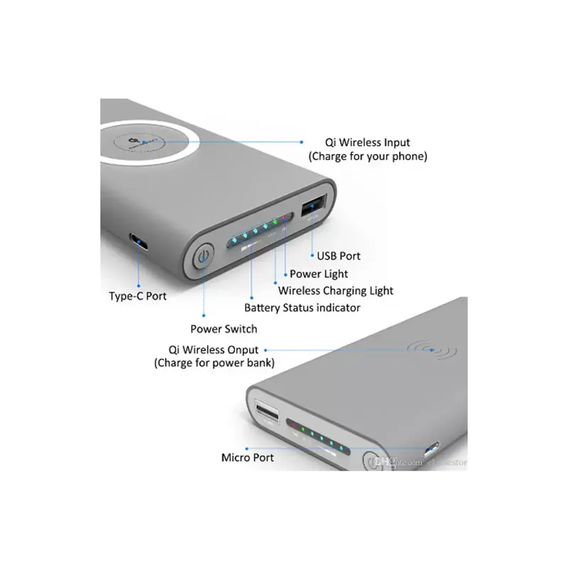 Cargador Portatil Power Bank Doble Inalambrico Qi 10000 Mah - GRIS