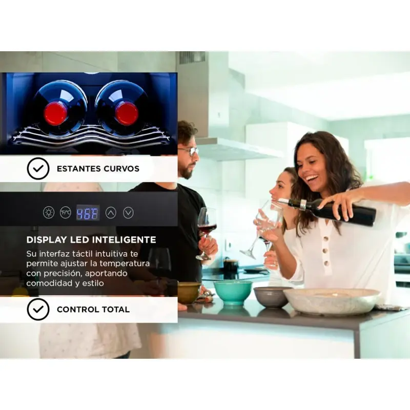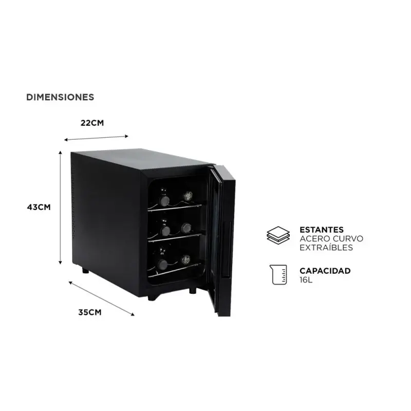 Conservá tu colección de vinos en condiciones ideales con la Cava de Vinos de Ziyen de 6 botellas. Su diseño compacto y moderno se adapta a cualquier cocina o bar, mientras que el sistema de enfriamiento inteligente mantiene la temperatura entre 12° y 18°C, garantizando una conservación óptima. Incluye una luz LED azul interior, estantes curvos de acero y una goma de sellado que asegura frescura constante. Además, gracias a su display digital con controles táctiles, podés ajustar la temperatura con facilidad. Ideal para los amantes del vino que valoran diseño y funcionalidad. Especificaciones Capacidad: 16 litros (6 botellas) Entrada: 12 V / 2.5 A Potencia: 30 W Rango Temperatura: 12C-18C (53F-65F) Panel de Control Iluminación Interior: LED Estantes de Acero Curvo Extraíbles Goma de Sellado Hermético Garantía: 12 meses