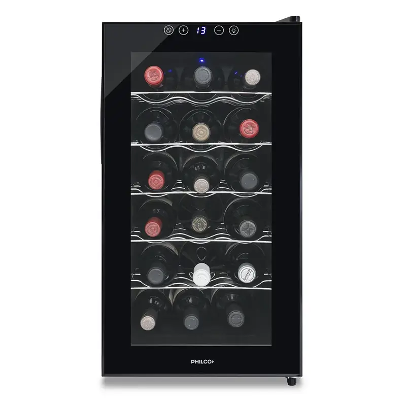 Cava Termoeléctrica Philco 18 Botellas Panel Touch PHCAV018N2 Caracteristicas: Capacidad de 18 botellas Temperatura de 10°C a 18°C Sistema de refrigeración termoeléctrica 5 estantes de acero inoxidable Panel touch- Pantalla LED Control de luz interior Termostato regulable Ideal para almacenamientos prolongados Largo del cable: 158 cm 4 patas Garantia: 12 Meses "La presente publicación está destinada únicamente a consumidores finales. En consecuencia, conforme normas fiscales la factura a emitirse será tipo "B"
