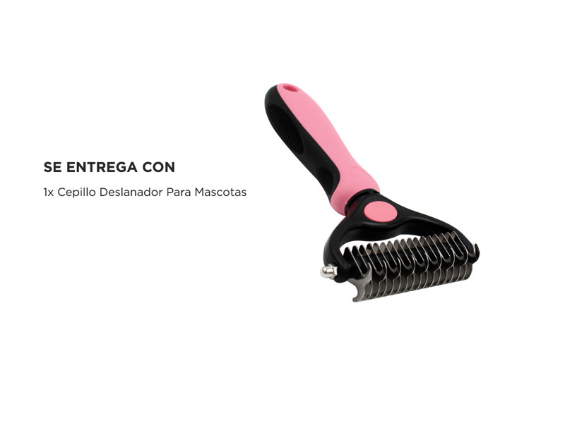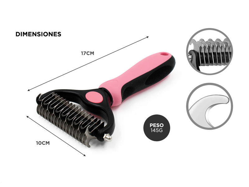 ¡Nuevo Cepillo para Peluqueria Canina!El cepillo de doble hoja es apto para perros y gatos de todos los tamañosSeguro y durable:Tus mascotas son más felices cuando su aseo es correcto, este cepillo te permitirá mantener el pelaje prolijo y libre de nudos. Construido en plástico de alta calidad y acero inoxidable con terminaciones seguras que no lastiman ni pellizcan al animalIdeal para uso profesional o hogareño:Es tan fácil de usar que puede usarse en peluquerías caninas como en hogares. Posee doble hoja, 9 dientes de corte + 17 de peinado y sacapelosEspecificacionesMaterial: Plástico y Acero InoxidableDesenredante: SíDeslanador: SíMedida: 17x10cmPeso: 145g