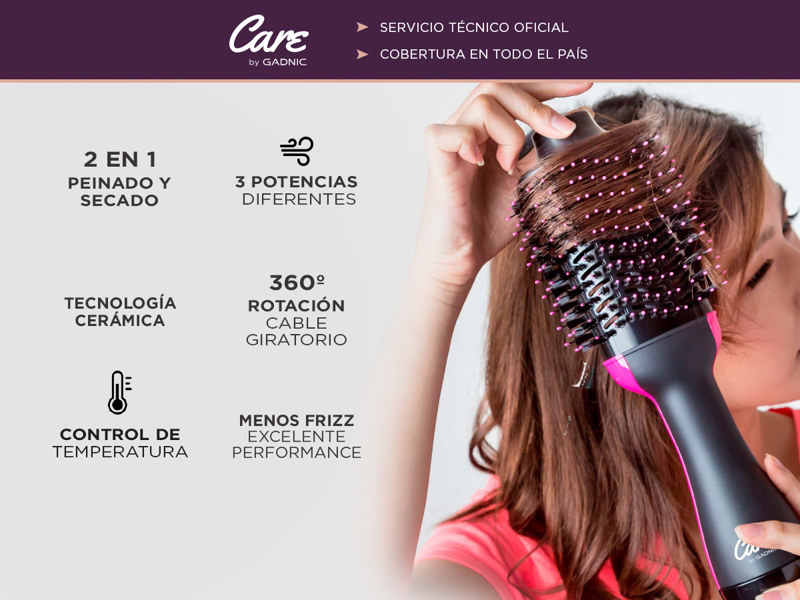 ¡GADNIC Care presenta su nueva línea de productos de peluquería profesional! Éste nuevo secador-cepillo de pelo presenta tecnología cerámica y de iones negativos que lo convierten en uno de los más versátiles y modernos del mercado. Ideal para uso profesional y domiciliario, incluye gancho de sujeción y cable 360 para mayor comodidad.