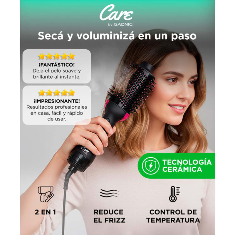 ¡GADNIC Care presenta su nueva línea de productos de peluquería profesional! Éste nuevo secador-cepillo de pelo presenta tecnología cerámica y de iones negativos que lo convierten en uno de los más versátiles y modernos del mercado. Ideal para uso profesional y domiciliario, incluye gancho de sujeción y cable 360 para mayor comodidad.
