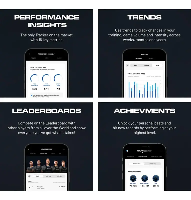 Paquete completo para los mejores atletas: incluye rastreador deportivo GPS, APEX 2.0 STATSports Vest, cable de carga y acceso gratuito a la aplicación STATSports iOS y Android. No