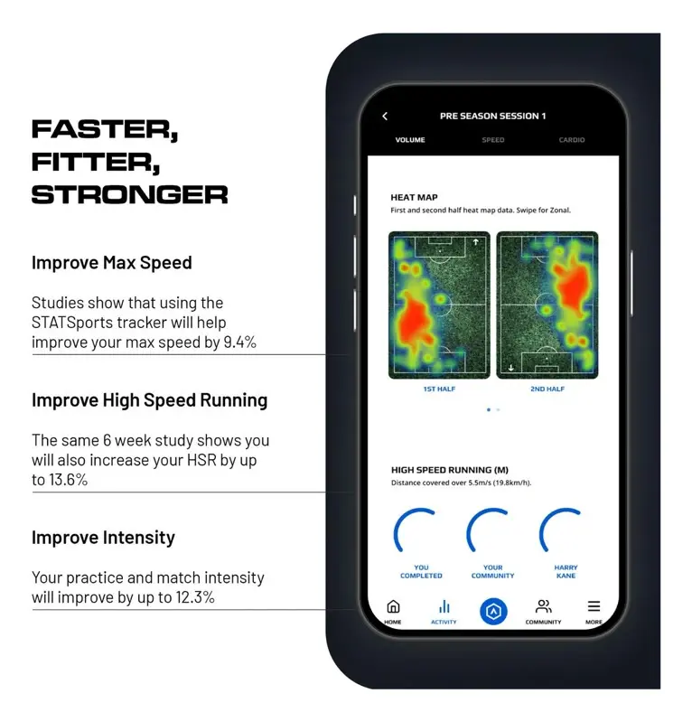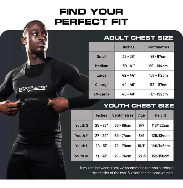 REDUCE LESIONES Y RECUPERE MÁS INTELIGENTE: Monitoree la recuperación y reduzca los riesgos de lesiones con métricas específicas del jugador, como carga y fatiga. El chaleco rastreador Stat Sports permite a los atletas entrenar de manera eficiente mientras evita el sobreentrenamiento y el agotamiento.