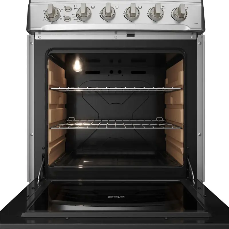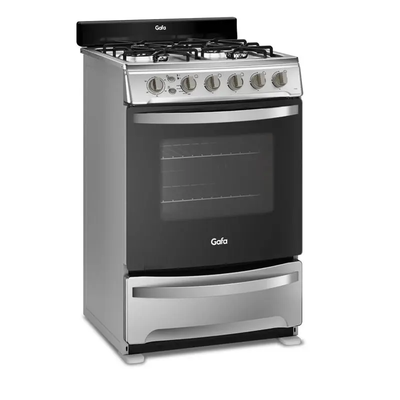 Prepará deliciosas comidas con la Cocina a Gas Gafa CGX56 Inox. Su timer permite programar fácilmente el tiempo de preparación de tus comidas, con un solo toque. Cuenta con encendido automático en horno y hornallas, brindando mayor facilidad y practicidad en el uso. Para mejor visibilidad del interior del horno, la cocina a gas tiene luz y visor, para que no tengas a necesidad de abrir la puerta. El interior del horno está recubierto de un esmalte autolimpiante que hace que la grasa no se pegue permitiendo una limpieza más rápida. Su mesada de acero inoxidable de única pieza es más robusta y fácil de limpiar. Su cajón parrilla deslizable con tapa abatible permite cocinar y gratinar mucho más fácil. La Cocina a Gas Gafa CGX56 Inox brinda más practicidad al cocinar platos para tu familia. TIMER: Te permite programar el tiempo y te avisa cuando la preparación está lista. ENCENDIDO ELECTRÓNICO EN HORNO Y HORNALLAS: El botón chispero permite mayor practicidad para encender las hornallas y el horno. LUZ Y VISOR EN HORNO: Mejor visibilidad del interior del horno, sin la necesidad de abrir la puerta. HORNO AUTOLIMPIANTE: El interior del horno está recubierto por un esmalte autolimpiante haciendo que sea más rápida la limpieza. MESADA DE ACERO INOXIDABLE DE ÚNICA PIEZA: Una sola pieza robusta y fácil de limpiar ya que evita que los líquidos ingresen al interior CAJÓN PARRILLA Su tapa abatible y deslizable, permite sacar bandejas y moldes, cocinar y gratinar mucho más fácil. ____________________________ ESPECIFICACIONES » Marca: Gafa » Color: Acero Inoxidable » Alto (cm): 85 » Ancho (cm): 56 » Profundidad (cm): 57 » Luz Interior: Si » Cantidad de Quemadores: 4 » Horno Autolimpiante: Si » Encendido Electronico: Si » Timer: Si » Parrilla: Si » Modelo: CGX56 » Empresa: ARF