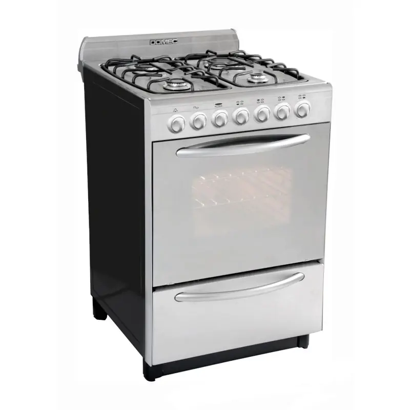 Cocina Multigas, 4 hornallas, puerta horno visor espejado, luz, encendido eléctrico, timer, autolimpiante, cajón parrilla, rejillas simil fundición, válvula de seguridad en horno y hornallas, Acero Inoxidable.- Altura: 85 cms. – 92 cms. con respaldoAncho: 56 cms.Profundidad: 60 cms. Consumo eléctrico: 25 wConsumo Gas: 9473 Kcal/hVolumen util horno: 62 Lts.Volumen total horno: 66 Lts- Peso: 45 Kg. Origen: Argentina Garantia: 1 añoLas imágenes son a sola forma ilustrativa sujetas a modificaciones