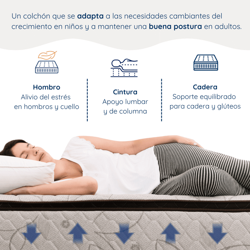 Este colchón de 1 plaza con espuma de alta densidad está fabricado con tela jacquard antialérgica y antiácaros, lo que lo hace perfecto para personas alérgicas o con piel sensible. Es una opción ideal para dormitorios de niños, adolescentes y adultos, habitaciones de huéspedes o quienes duermen solos y priorizan la calidad del descanso.